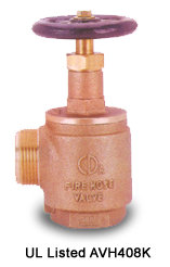 AVH 407F 1 1/2 NPT thread female inlet with 1 1/2 NPT thread female outlet AVH 408K 1 1/2 NPT thread female inlet with 1 1/2 NST thread female outlet AVH 657K 1 1/2 NPT thread female inlet with 2 1/2 NPT thread female outlet AVH 658K 2 1/2 NPT thread female inlet with 2 1/2 NST thread female outlet The valve is made in accordance with UL668 Hose valve for fire-protection service Optional extra female NST cap & chain Material body cast brass ASTM B584 C85700 hand wheel ductile cast iron ASTM A536 60-40-18 Marking UL LISTED 3S59 1 1/2 / 2 1/2 A FIRE HOSE VALVE 300 Rated pressure 300 psi Test pressure 600psi |
