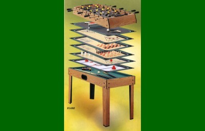 Table Dimensions: 47-5/8"L x 24"W x 32"H Playing Surface Dimensions: 41-7/16"L x 22-7/8"W Playing Court: 3/16"M.D.F With Dark-Green Paper & Amino Soccer Table Side Aprons: 6-1/8"x5/8" Particle Board With PVC A7401 Soccer Table End Aprons: 6-1/8"x3/8" M.D.F With PVC A7401 Billiards Table Top Side & End Aprons: 5-1/8"x1/2" Particle Board With PVC A7401 Legs: L-Style Legs, 1/2" Particle Board With PVC A7401 Play Bar: 1/2" x1.2mm With Nickel Plated Players(ABS): Twenty-two Players, Yellow(803c) & Blue(072c) (4-3-3-1) |