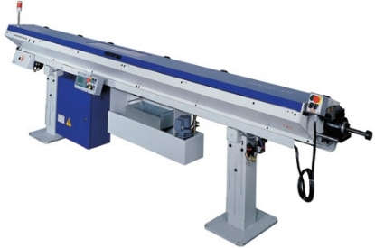 These are the basic principles of SUPER 326's philosophy. This feeder is capable of managing the bar completely, integrating with all types of single-spindle lathes, either with CNC or mechanical and with fixed or sliding headstock. Featured with limited dimensions thanks to a double bar pusher, the feeder total length does not vary according to the variation of the bar pusher; lubricated guide channels eliminate noise and vibrations; a device between the lathe collet and the bar pusher controls and drives the bar, adjustable for every diameter without replacing parts (IEMCA Patent); feeding and production control; internal remnant removal. Synchronization device with sliding headstock; these are only some of this feeder's winning features that represents a cost-effective solution of the bar feeding. Fully meet feeding requirement of all kinds of lathes, Cam / CNC lathes, Fixed Heads-tock / Sliding Headstock lathes. |