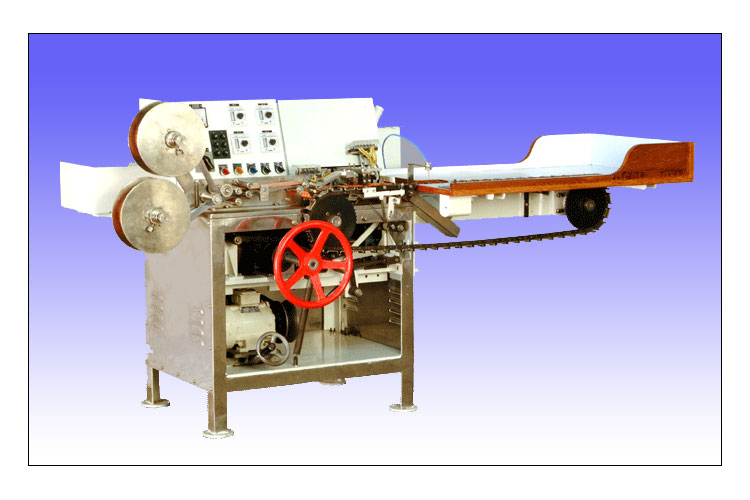 Packing type Rectangular pack or Square pack(four side sealing) Sealing capacityˇ¦speed 70-80 pcs/min. Packing size 28 x 68mm OR 56 x 56 mm. Power supply 440V, 3 phase, 50 Hz Power transmission Power transmission through electro magnetic clutches & reduction gear box. Motor 1HP, 3phase, 440 volt. Power consumption 2KW(max)/hr. Dimension 80 cm(W) x 210cm(L) x 130cm(H) Weight 500kg(Approx). On line printer Batch no. & expiry date ink printer(heat printing) (Optional) capable of printing on all type of foils. Lubricating oil dosing (Current signal input type). Pump having suitable regulator(Range must be 150mg to 500mg) complete with Lubrication storage tank(4ltrs) and control panel. Sealing heaters 1st heater ˇV 2 units of 220 V , 250W 8mm dia - 50mm Length. 2nd heater ˇV 4 units of 220V, 200W 8mm dia- 70mm length. Foil holders Pair of foil holders with suitable provision to hold all type of foils with easy loading and unloading arrangement with break system adjustable or synchronised.