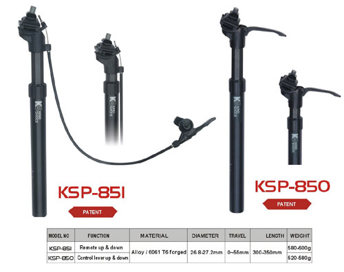 The product series features suspension seat post that have externally adjustable travel. Ride height can be adjusted any time while riding.