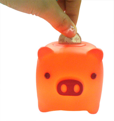 Coin Bank function When you put the coin in, along with red color-light, it starts to say "I Love you" three times (English Version) OR "Gong Xi Fa Cai" twice (Chinese Version).