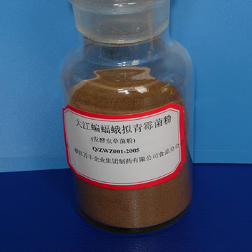 Features: 1) Cordyceps sinensis (berk) sace is a fungus living on the larva of hepialus armorcanus oberthur forming a compound of fungus in dead body of the worm 2) It is a special medicinal material produced on cold highlands of Qinghai Yushu district 3) The mycelia of this fungus are obtained by biological technology 4) It is permitted by SFDA, and widely used in health care food, and really an ideal man-made substitution of natural Chinese caterpillar fungus