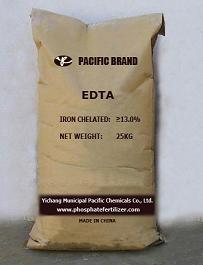 The details specification as follows: Ethylenediaminetetraacetic acid, ferric sodium complex EDTA Fertilizer Iron chelated: 13.0 min Water insoluble: 0.1 max PH value 1 of the solution: 4.0-6.5 Heavy metalsas per Pb: 4.0ppm max Appearance: yellow crystalline powder Capacity: 2,000mts per year Packing: 25kg net in kraft paper bag