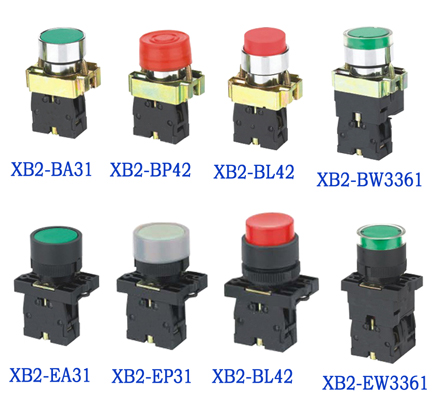 Model No.: XB2-(BL42, EP31) 1) Basic feature is the same as above stated 2) This kind of pushbutton is characterized by its protruding head, and whose merit is prevent from pressing failure when someone have long fingernail.