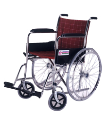 FEATURES: 1. Fixed armrests, fixed footrests. 2. 8"x 1" solid front tires, 24"x 1-3/8" solid rear tires. 3. Air permeable nylon seat. 4. Plastic footrests. |