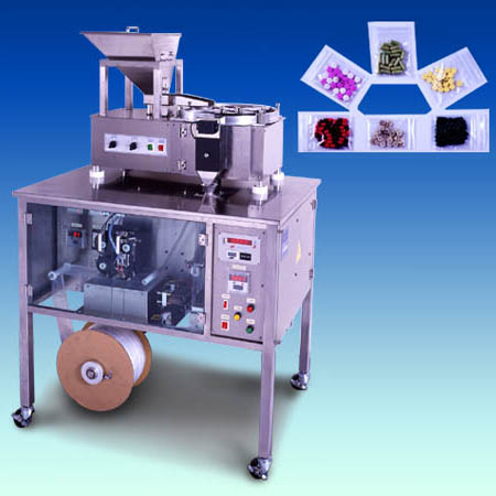 Stainless-steel frame and GMP-standard worktable-top. Electronic data display; auto counting, cording. Packs medicines using zip-lock bags. Designed for packing different sizes of zip-lock bag. Letter imprinting device imprints product names, quantities, and packing dates. Stable rotating system and photocell system are easy to operate and maintain. Automated simultaneous counting, letter imprinting, and packing is labor-saving. Machine dimensions : 1000mm(L) x 700mm(W) x 1,560mm(H) Power supply : 110V/220V, 50/60Hz Machine weight : 90kgs