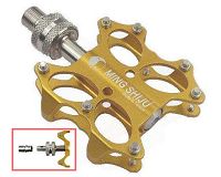 "Body: Aluminium Axle:Carbon Steel Reflector: CATEYE Wheel Size:105 m/m x 99 m/m Packing:Box packaging OR Blister packing" "Flash LED Lighted bicycle pedal - Silver Features: - Made in aluminum:Used for regular MTB bike. -Build in generator. Side light for added visibility, six Flash LED lights for each - No battery needed Flash LED lighting pedal -Easy Installation "