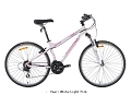 "15 inch & 17 inch, Alloy 6061 Frame ¡@ 17 inch, 13.4 Kgs Features: - Suitable for commuter or sport enthusiast - Outstanding head tube shape by CNC machined - Equipped with Shimano 11-34 ration Teeth, energy-saving when mountain climbing - Kenda K-1029 tire with reflector strip - Shimano crank, brake/shift lever, front/rear derailleur Color Optional - Pearl White/Light Pink - Pearl White/Light Blue