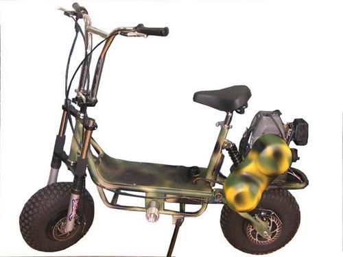 The conventional small engine motorized scooter drives the rear wheel directly from the engines centrifugal clutch, with no torque converter or multiple speed transmission in the driveline. This is like driving an automobile, with a manual transmission, in 2nd gear all the time! The clutch is abused at every start and the engine is always running at high RPM's.